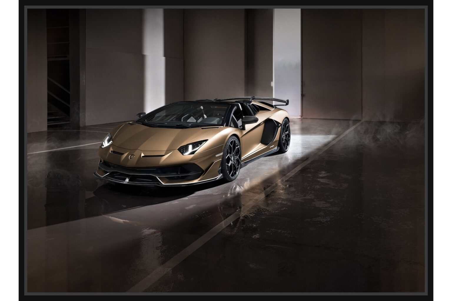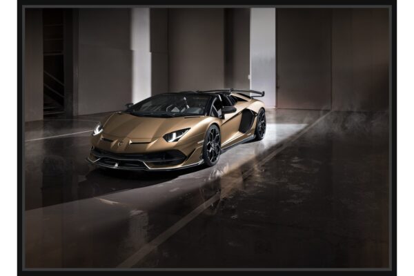 Bronze Lamborghini Aventador luxury supercar dramatic light