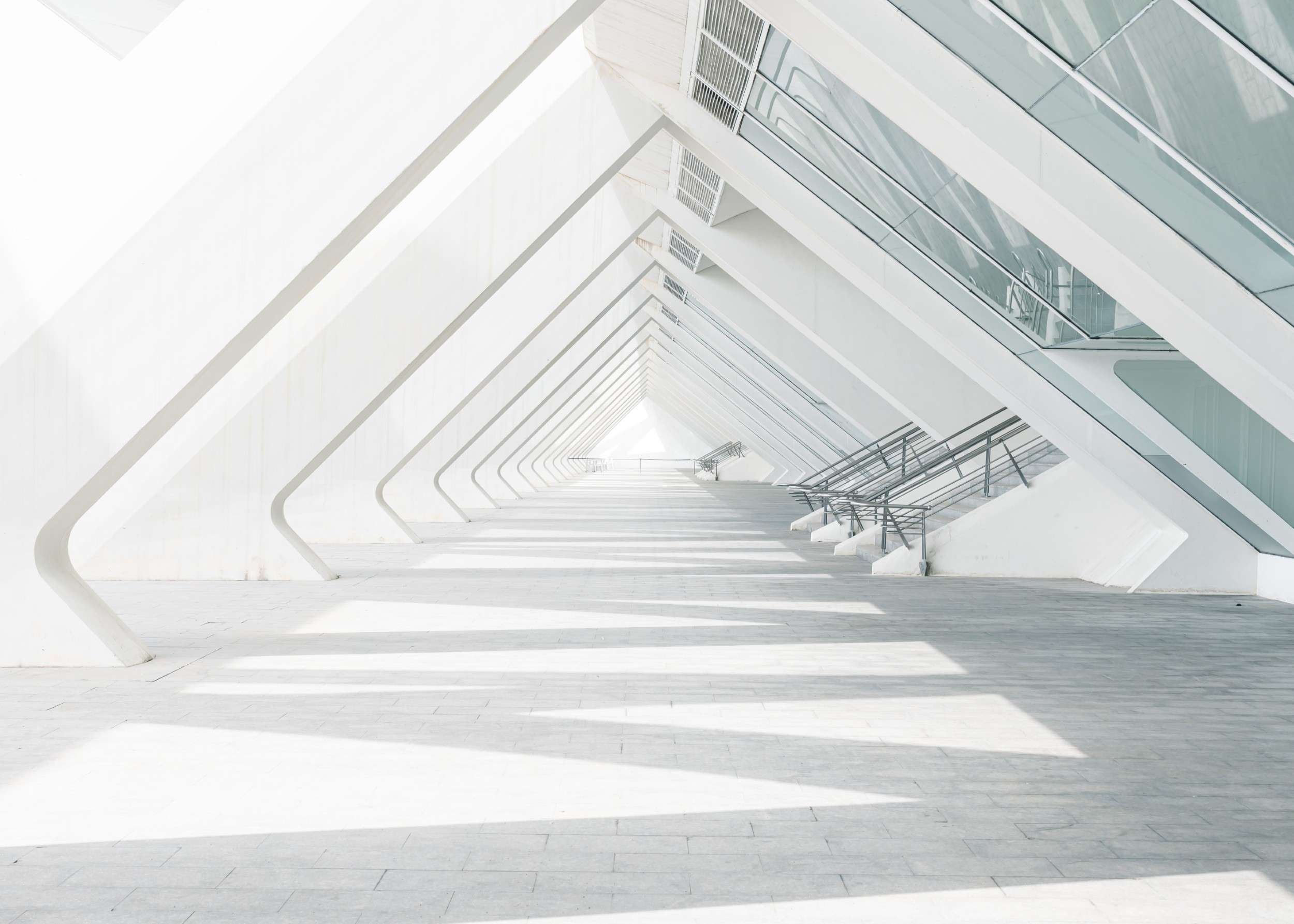 Бяла футуристична архитектура с геометрия