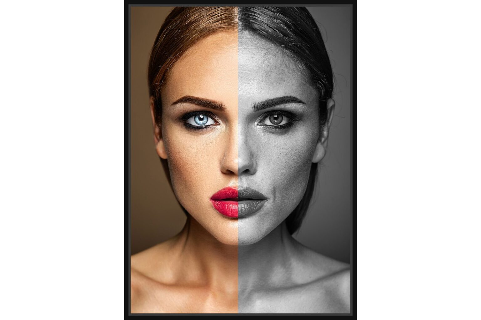 Двуцветен портрет – половина цветен, половина черно-бял.