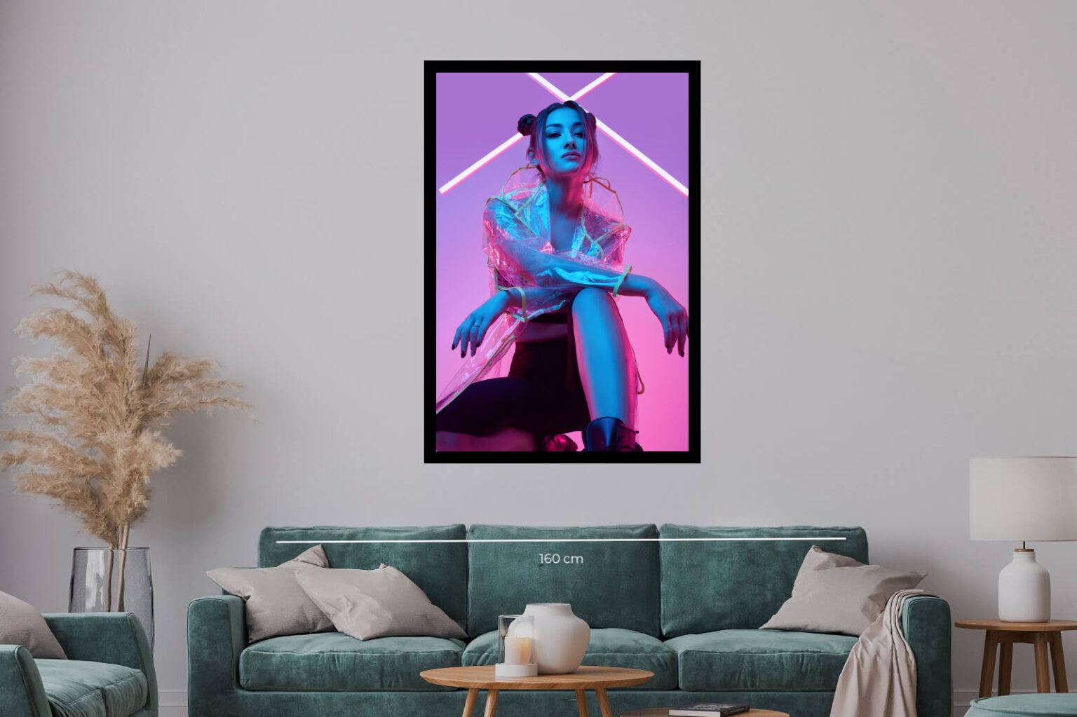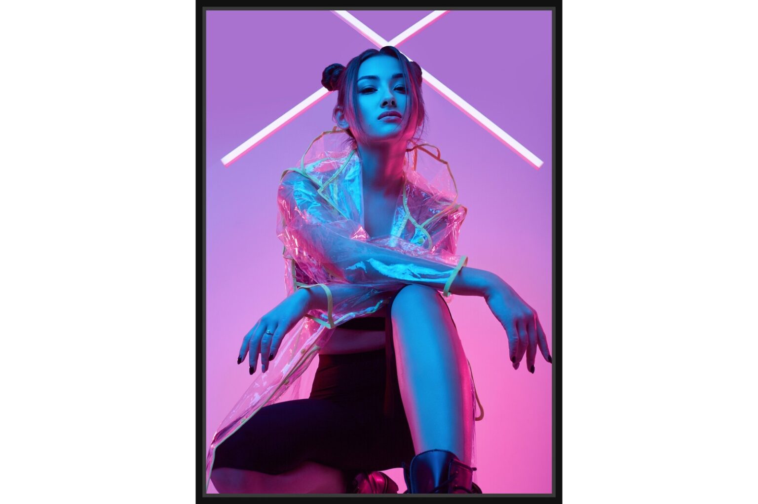 Жена с неонова визия и стилна поза