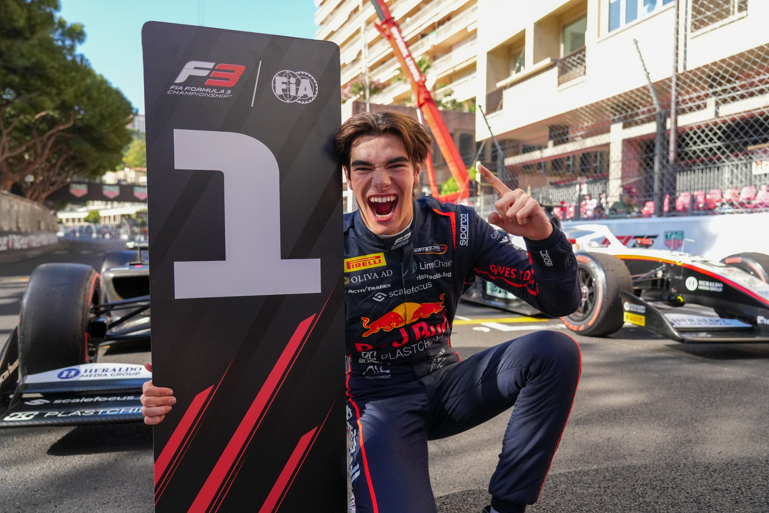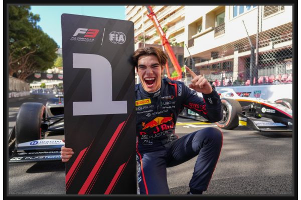 Пилот във Формула 3 празнува победа с табела 1