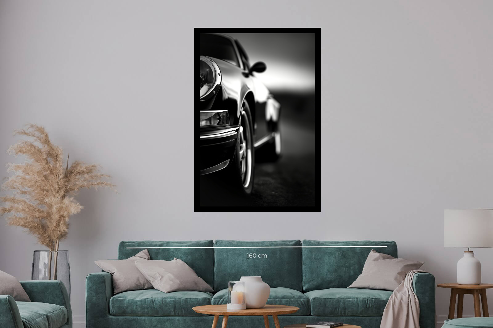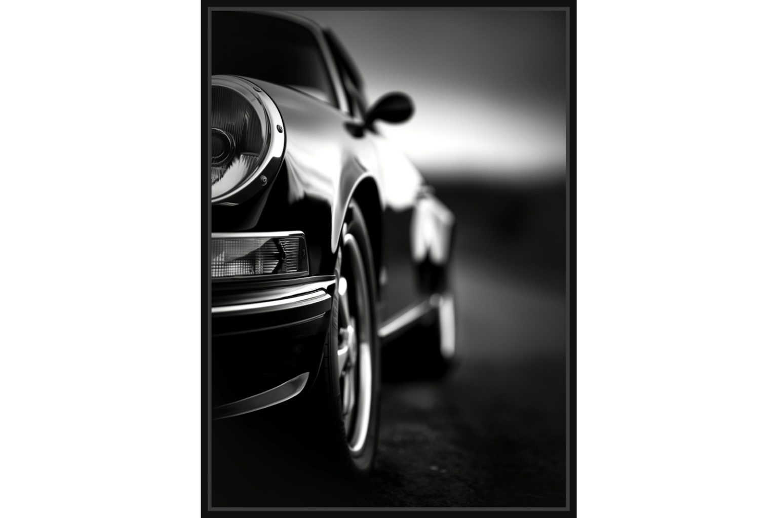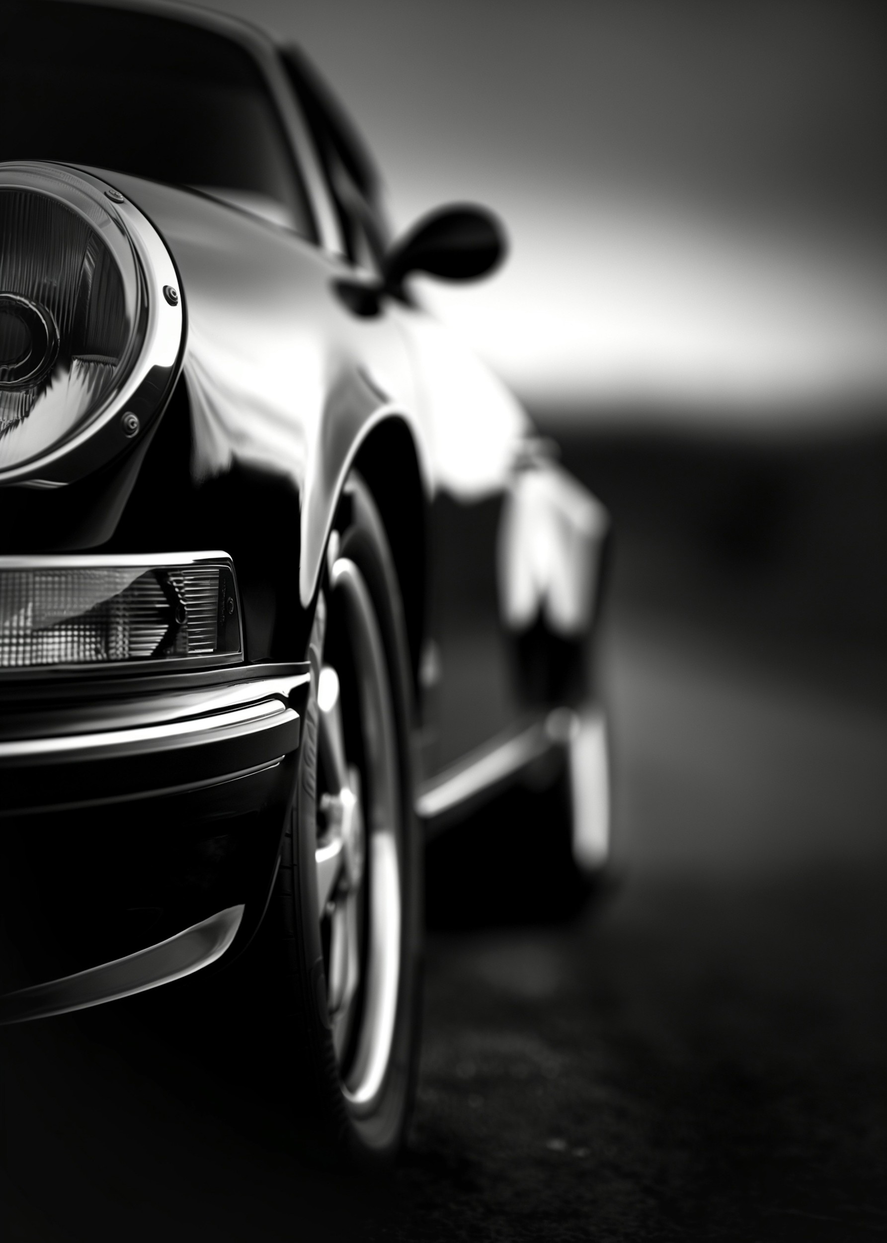 Елегантен силует на ретро автомобил, заснет в ниска светлина. Формите на колата изпъкват като скулптура, обвита в мистерия и носталгия. Фотографията подчертава иконичния дизайн на миналото и неговото непреходно излъчване.