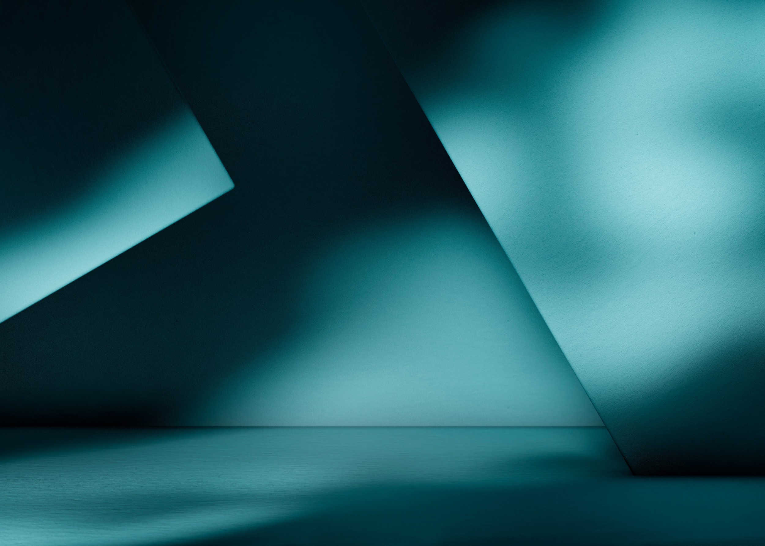 Тъмна абстракция със светлинни петна в синьо-зелено
