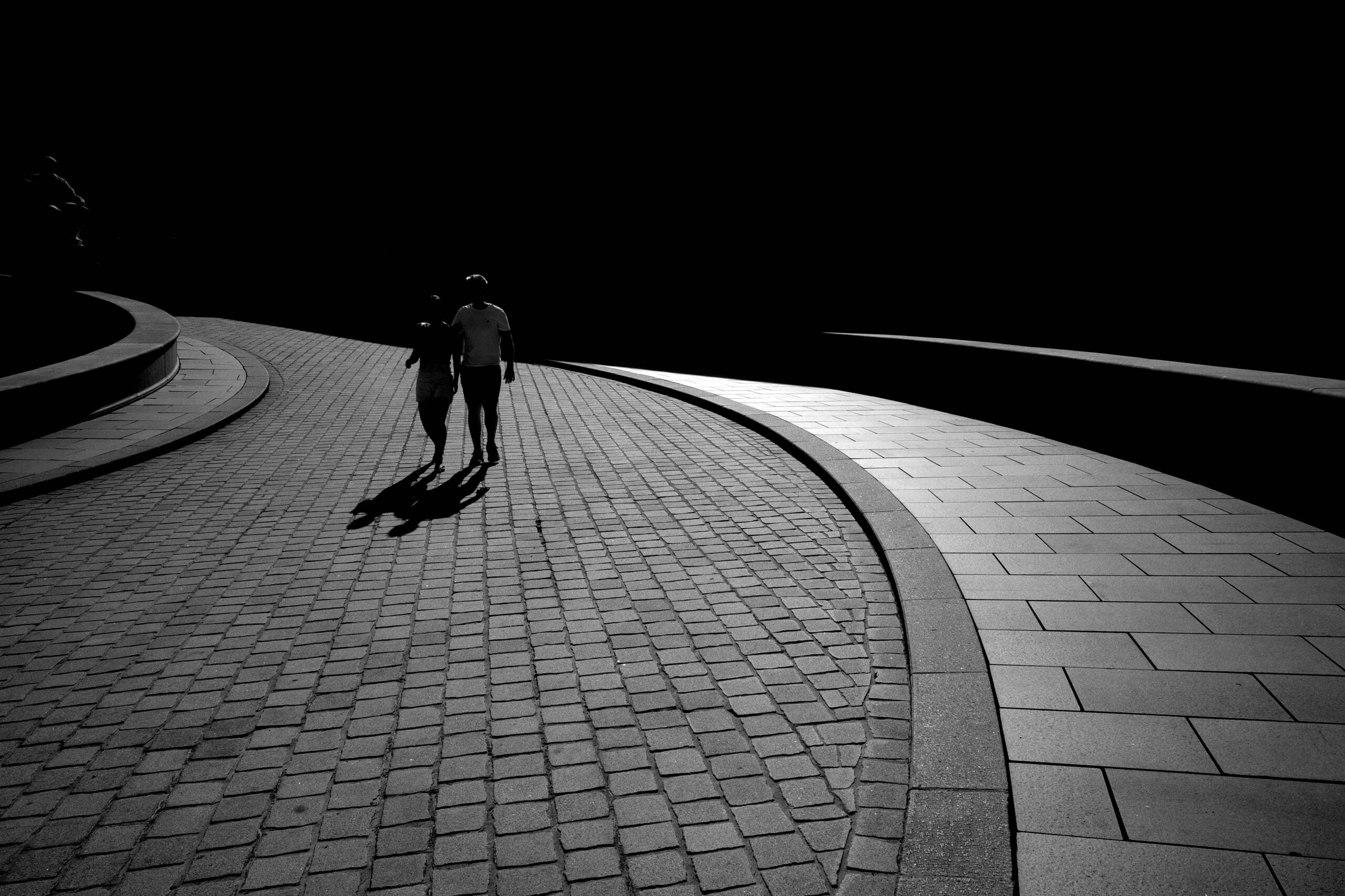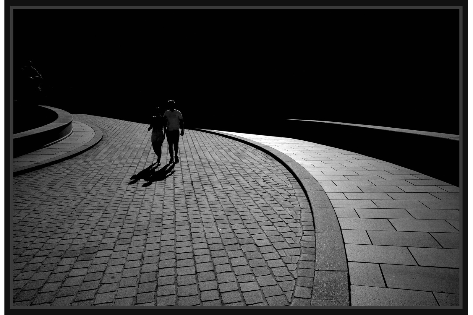 Артистичен кадър улавящ влюбена двойка пред парламента във Виена. Силната дневна светлина и високият черно-бял контраст подсилват вниманието в диагонала, водещите линии и сенките на влюбената двойка.