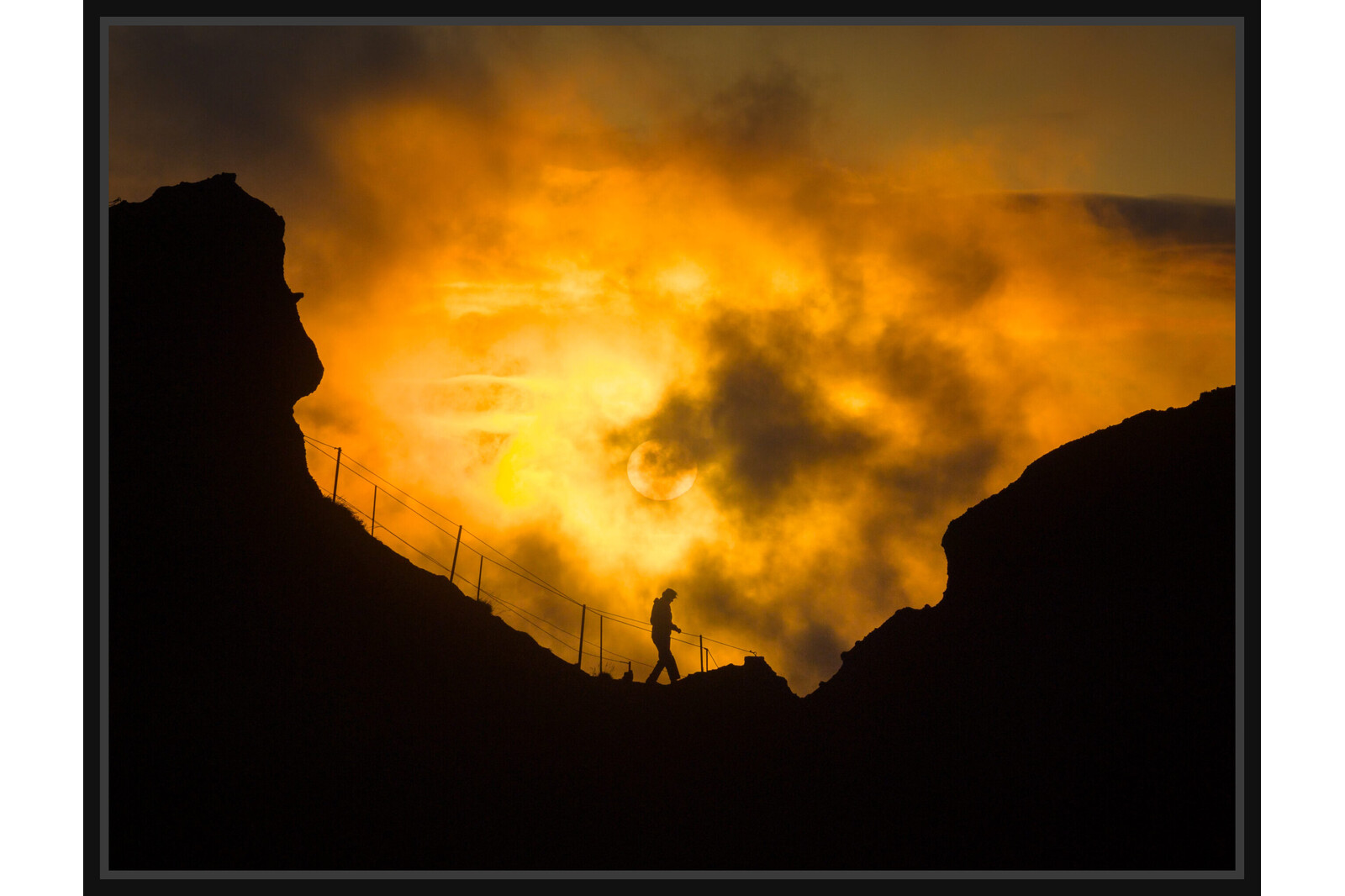 Тук започва туристическата пътека, която свързва Pico do Ariero и Pico Ruivo, а един от най-впечатляващите ѝ сегменти е прочутата тясна пътечка, наречена Стъпалата към Рая – широка по-малко от 80 см, с отвесни 200-метрови пропасти от двете страни. Докато летях с дрона, видях как точно на това място слънцето рисува невероятни силуети на преминаващите туристи, очертавайки всеки детайл от профила им.