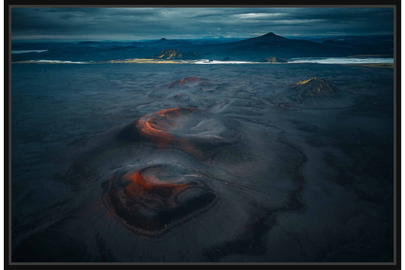 Хилядолетни кратери на застинали вулкани – на пръв поглед едни от хилядите такива гледки в Исландия. Но не бяха обикновени кратери – ръбовете им горяха в интензивно червено, но не от лава. Това е скурия – частици, отделени по време на изригвания, богати на метали, които с годините окисляват и образуват тези огнено червени ръбове.