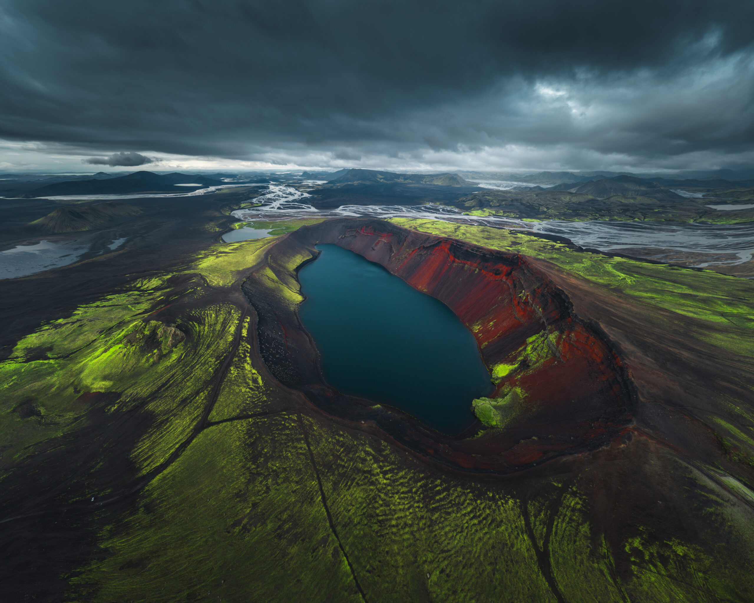 След дълга обиколка сред хълмове и вулканични пейзажи, открихме вълшебно място – спокойно езеро, разляло се в подножието на черни склонове. Вятърът беше напълно утихнал и повърхността му се превърна в огледало, в което небето и облаците танцуваха безкрайно. В този момент тишината беше толкова плътна, че дори собственото ми дишане звучеше като шум. Когато се качих на по-висока скала, езерото изглеждаше като капка вода, изгубена сред океан от застинала лава и мъх. Цветовете бяха минималистични – черно, сиво, синьо и онова невероятно зелено, което само Исландия умее да показва след дъжд.