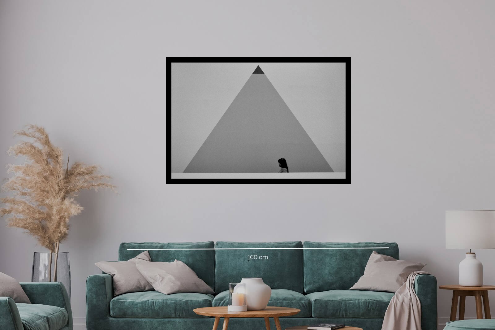 Минималистичен кадър, който постига максимален ефект чрез чистота на формата и контраста. Изображението е доминирано от перфектна пирамида – универсален символ на вечността, стабилността и израстването. На фона на тази геометрична мощ, фигурата на момиче е поставена в основата, като малък, но съществен детайл. Медитация върху мястото на индивида в мащаба на времето и историята. Идеална за колекционери, които ценят симетричния минимализъм и дълбокия подтекст.