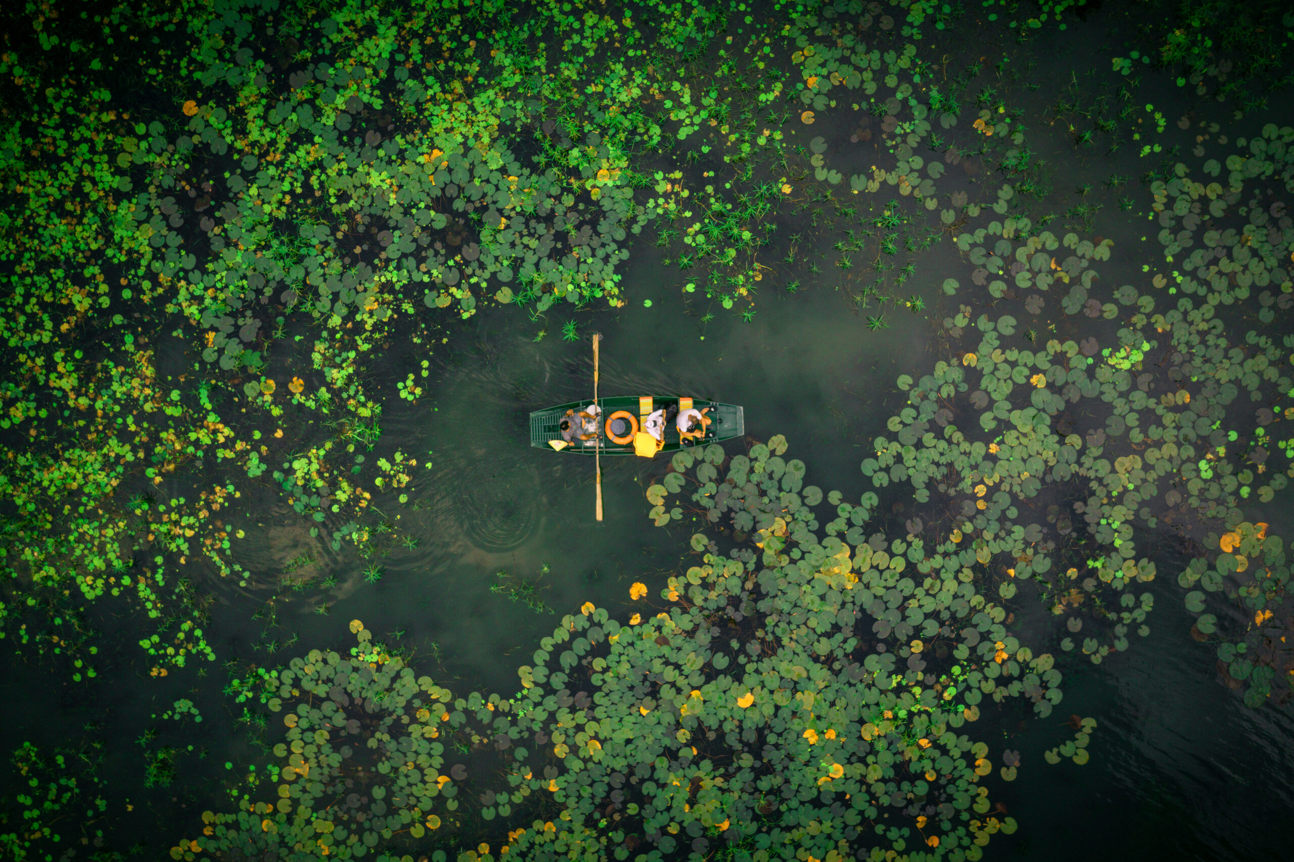 През септември реката Нин Бин се покрива с хиляди водни лилии, а тънкоподовите ламаринени лодки си проправят път през тях. Местните лодкари управляват лодките с крака вместо с ръце, умело разхождайки туристите и спестявайки сили по време на дългите часове труд.